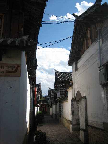 我们是下午到达古城,找了一个纳西人的客栈安顿下来,便立刻进古城。我们漫无目的地转上了狮子山,又顺其自然地转下了山,短短的1个多小时,匆匆地领略了古城的风貌,感觉良好,可是接下来几天的游街观巷,却越来越没有了兴致,总的感觉就是古城只剩下外表——一片房屋瓦舍,内在的精髓——历史文化、风土人情,已荡然无存,充斥着现代都市的商业气息和全国旅游景点到处都有的泛滥商品。白天,左看右看都是商品、餐饮和客栈,要么不想进,要么不能进;夜晚,耳闻目睹都是喧闹、斗酒和灯光污染,满街清一色的“猪腰子”型红灯笼,单调乏味。