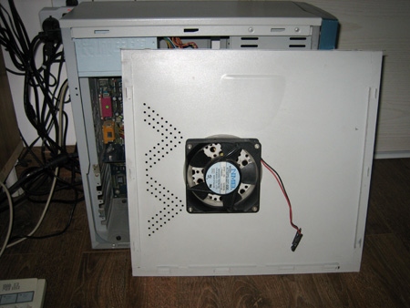 打开检查,发现CPU发热,怎么办,自己在电脑机箱一侧安装了一个大风扇。