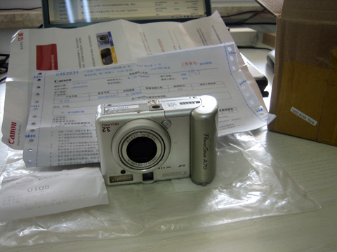 这是一台2004年3月购买的佳能PowerShot A70型数码照相机,很实用、适用。