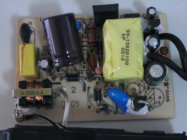 昨天,想DIY一个LED照明灯,要找电源,就想到这个适配器,决定动手修理。