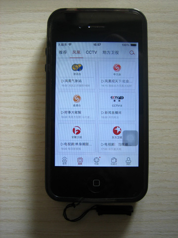 个人每天收听收视的最频繁的就是凤凰台节目,学习配置好了iPhone4音视机,开始个把星期,还是以前常看到的凤凰台几个,中央台一个,地方台多一些。因为,接收总是断断续续,或者干脆不动不响了,一会儿摆弄客户端,一会儿摆弄路由器,时不时还要判断网络塞不塞车,那个折腾啊!也就没太留意凤凰台也在变。有一天,赫然发现凤凰台的节目索引做了变化,一眼看到中央的大部分频道台都有了,这不就是在发展实现“广播”模式嘛!我一机在手,一站都有,不用这插件、那控件,稀里哗啦一大堆地都要安装在一机,机器累,人更累。