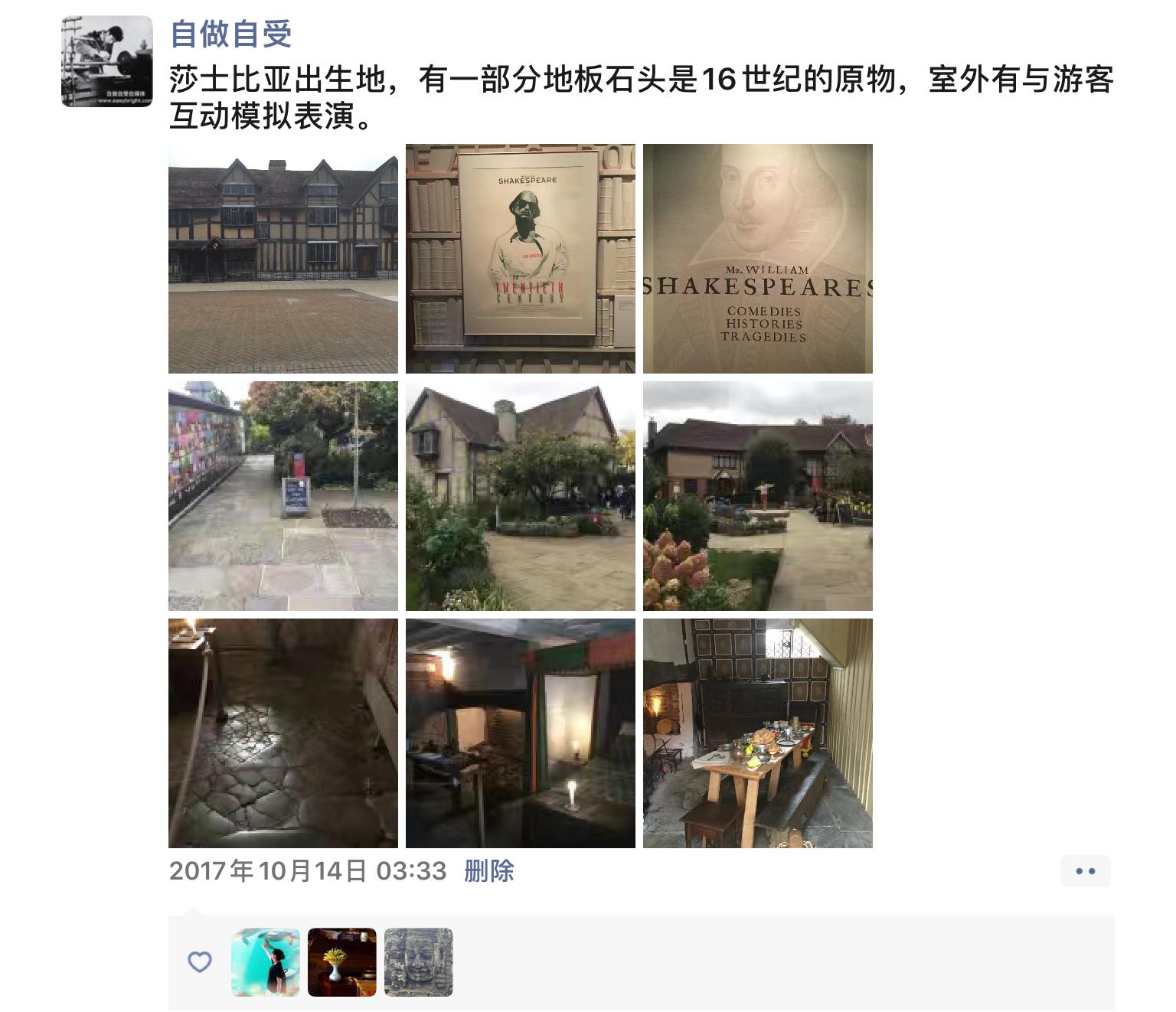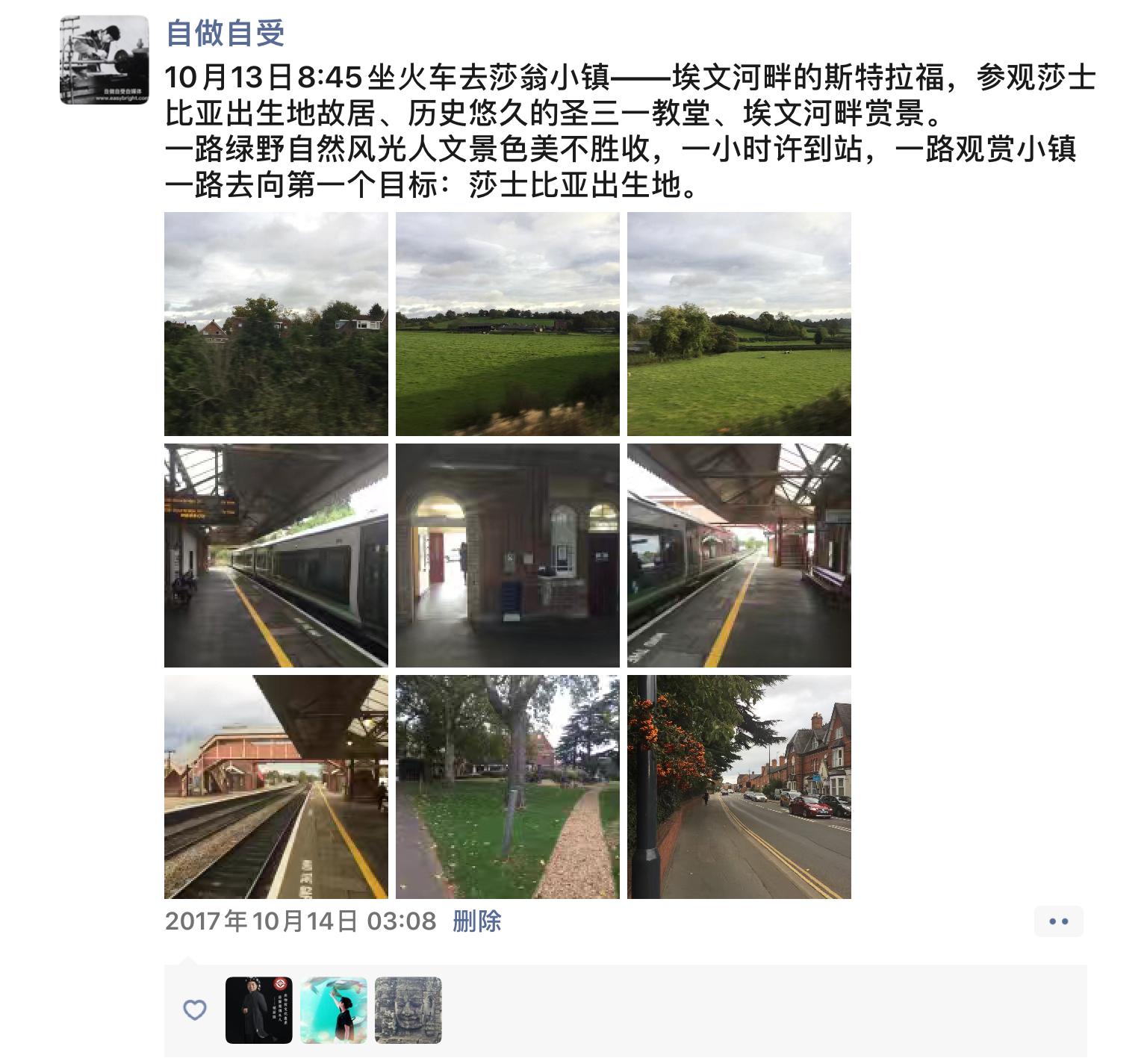 2017年10月13日星期五,莎士比亚故居所在地莎翁小镇——埃文河畔的斯特拉福(Stratford-upon-Avon)。