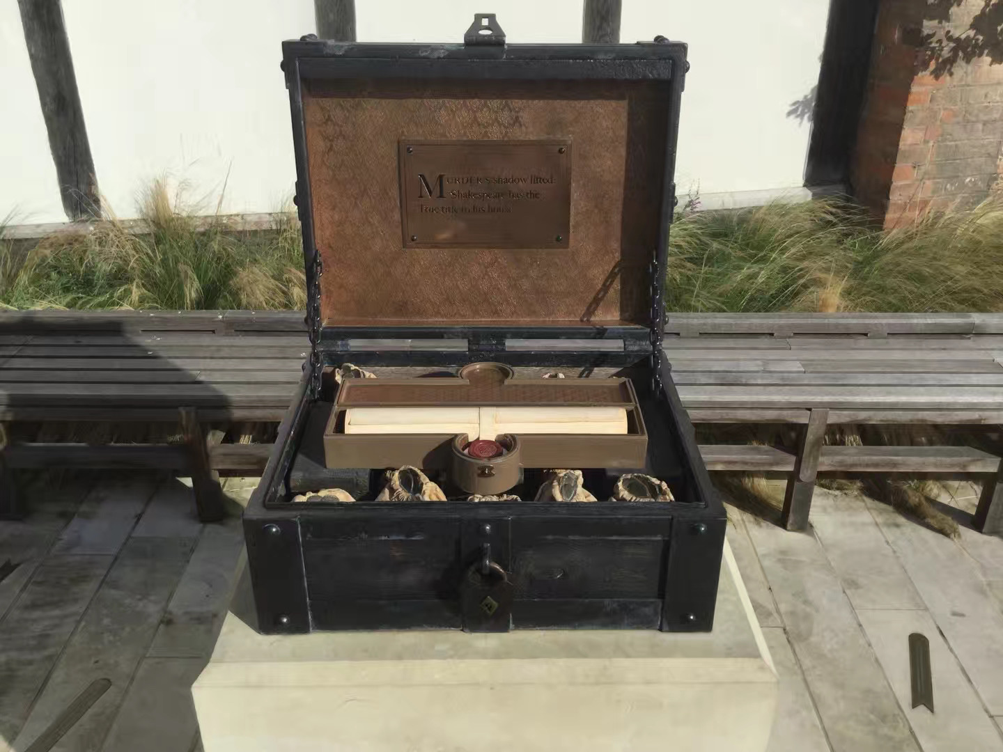 院子里,现场,游客可以随时参与莎士比亚作品戏剧的角色。