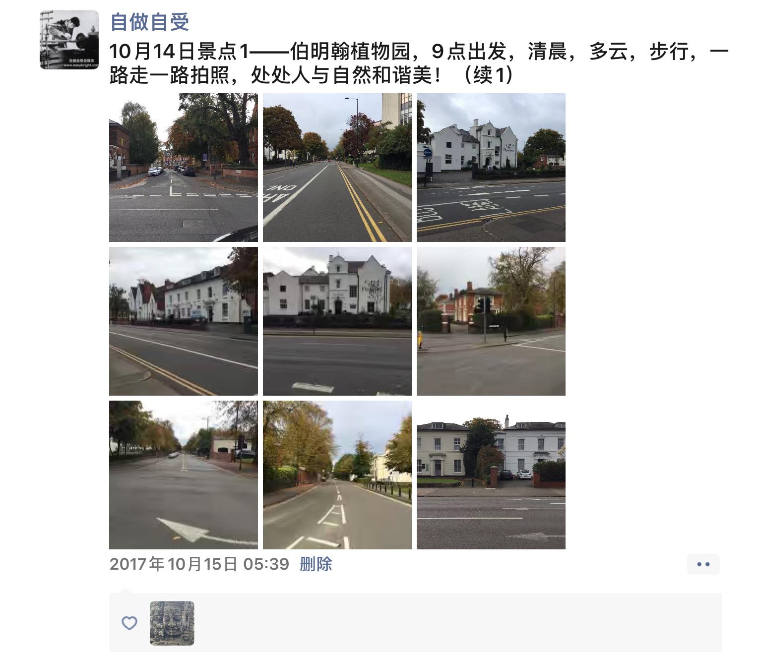 头晚复习路书时,查看在线地图,发现道路有封闭,细看,原来是举行市内马拉松比赛,呵呵,个人时间有限,马拉松就算了,所以临时改变游览路线,选择了自然、人文与学校。就是伯明翰植物园、温特伯恩庄园、伯明翰大学正门。
