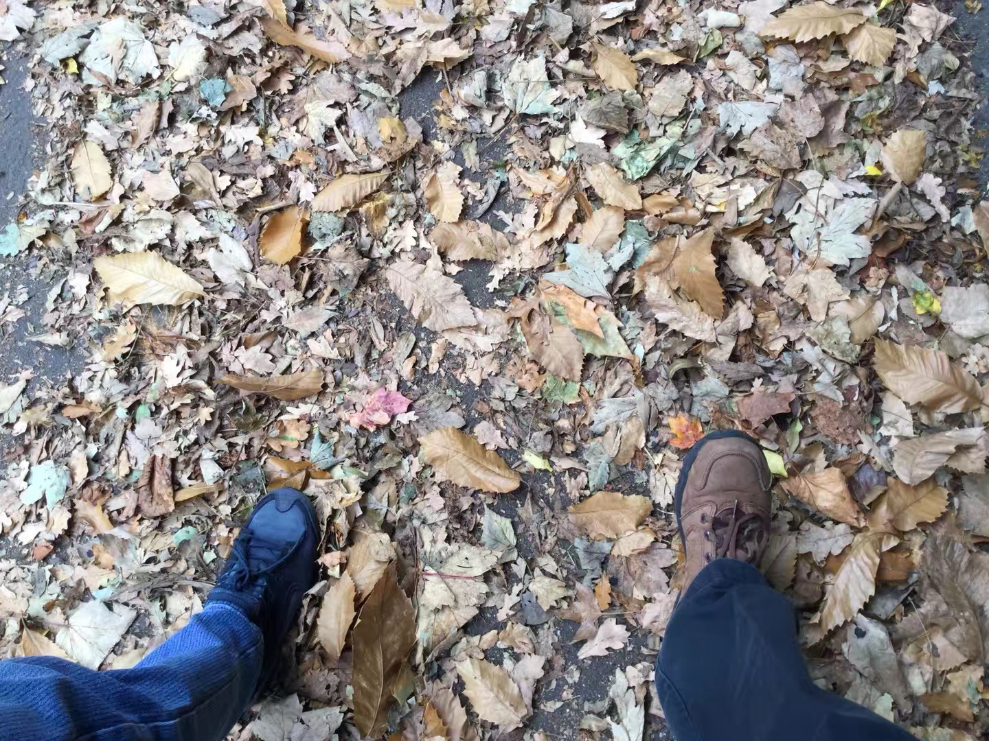 按照地图,我们选择了穿过一部分校区,就是下面图中两条座椅的前方,打道回府。