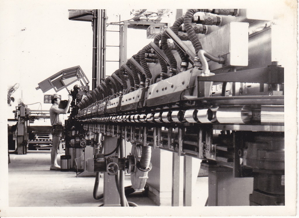 三年的学习,掌握了一点电子技术知识,毕业后,工厂总工程师,我的第三位里程碑式的人物,把我要到了设备科,从此开始了强电、弱电设备的维修工作。一是食品罐头杀菌釜的自动化控制系统安装与调试,二是参与安装调试和负责操作运行的高频焊自动化空罐生产线(如下图)。