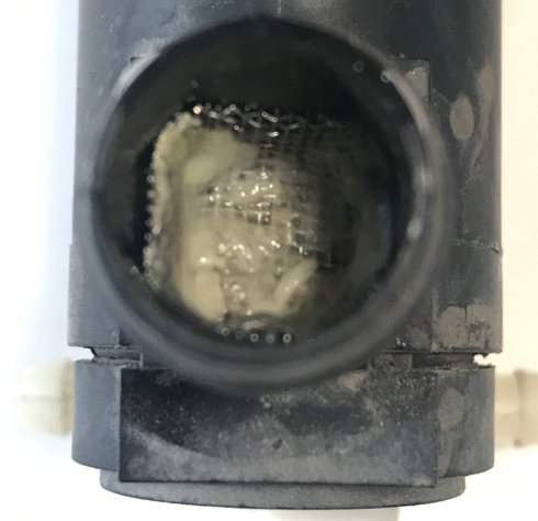 我向师傅要回两个换下来的部件,师傅说:你看,电机水泵的进水口都完全堵塞了。我目视看到的确是有一层较厚的糊状物。