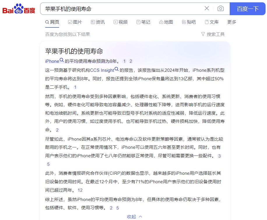 说是:从2024年开始,iPhone系列机型的平均寿命将达到8年。同时,报告还提到全球iPhone保有量将达到13亿部,其中超过50%是二手手机。