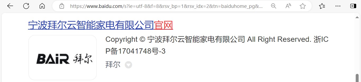输入“BAiR官网”,找到一家公司如下,看图标应该是了