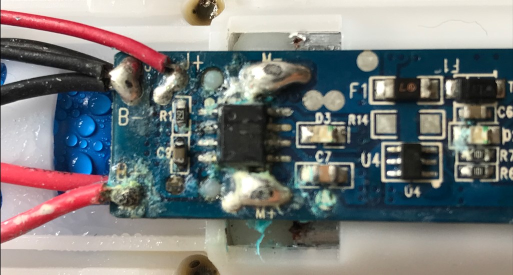 焊接一根导线将PCB与电机连接,整体都安装回去。
