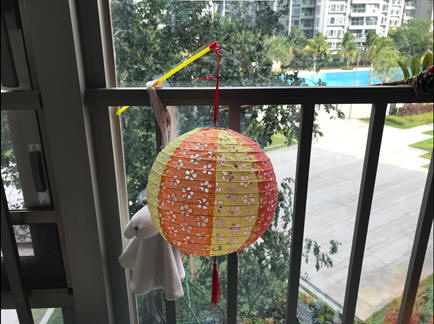 本能地反应第一就是废物利用,脑海里思索着,眼睛也随意看着,一眼看到阳台窗栏杆上挂着的小孩不玩了的一个小灯笼。